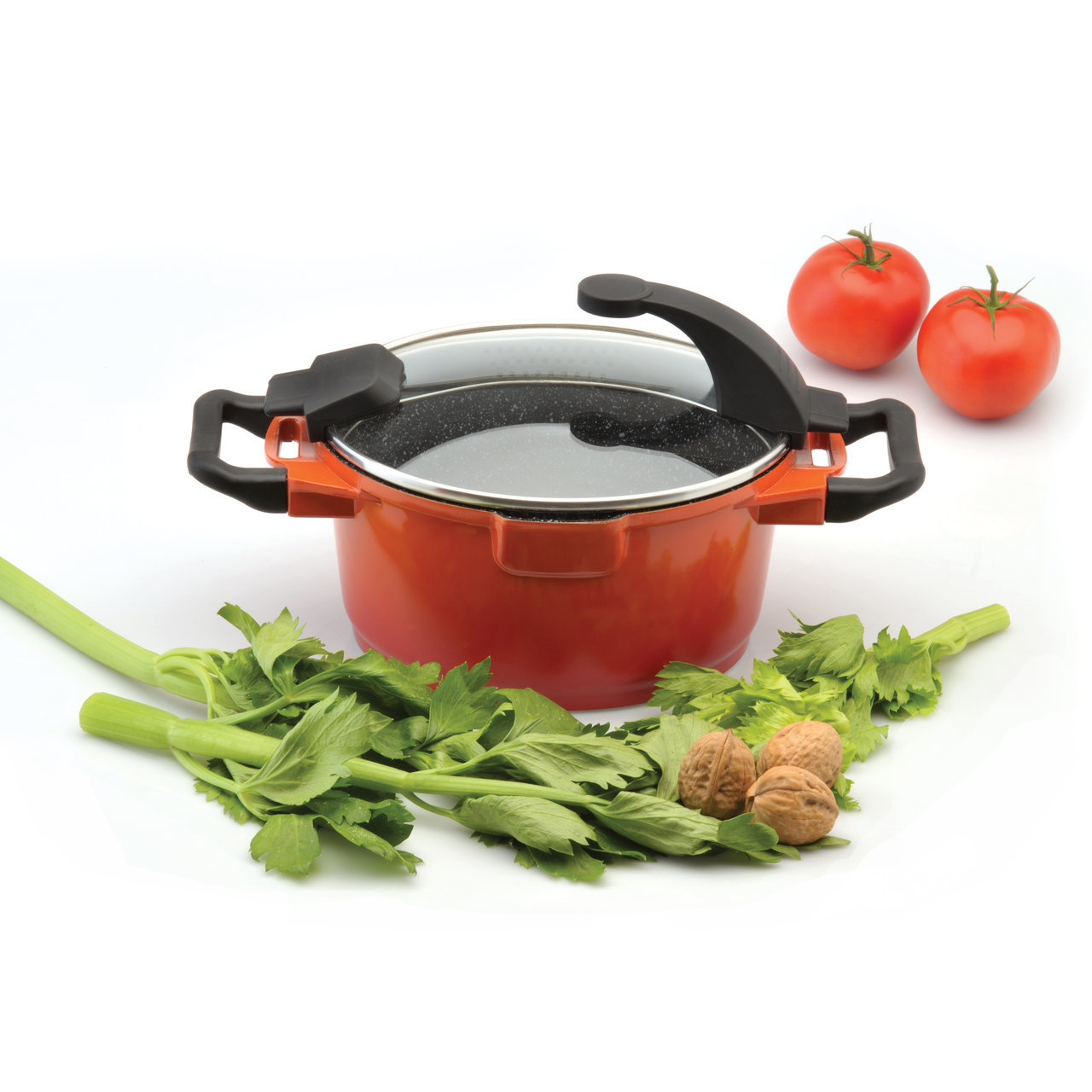Линия Virgo представлена в стильном белом, ярком оранжевом и импозантном темном: соберите набор из одного цвета в пользу единства на вашей кухне или отважьтесь на комбинацию светлого с темным. В идентичном дизайне выполнена и версия из нержавеющей стали.Для всех типов блюд маленького или среднего размера, гарниров, идеален для тушения овощей.Прочная и простая в использовании посуда с быстрым и равномерным распределением теплаЭргономичная ручка обеспечивает безопасный захват и удобство в поднятии кастрюли.Благодаря стеклянной крышке можно наблюдать за ингредиентами в кастрюле. Не нужно поднимать крышку, растрачивая энергию и вкусовые качества.Эта линия кастрюль и сковород характеризуется элегантно сформированным корпусом, красиво контрастирующим с черными ненагревающимися ручками. Оригинальная крышка предлагает ряд хорошо продуманных функций.Эти большие эргономичные ручки крышки не нагреваются в процессе приготовления. Продуманный дизайн прмещает крышку на кастрюле таким образом, что во время приготовления и подачи одна рука всегда остается свободной. Другая вставка, очень похожая на ту, которая удерживает крышку вертикально на кастрюле, предлагает дополнительную функциональность, когда крышка лежит на кастрюле: просто положите на них большие пальцы для удобного и безопасного слива воды.Многослойное и армированное, свободное от ПФОК антипригарное покрытие для удобного извлечения пищи и легкой чистки. Не содержит ни свинца, ни кадмия.Носики, по одному с каждой стороны, для аккуратного слива.