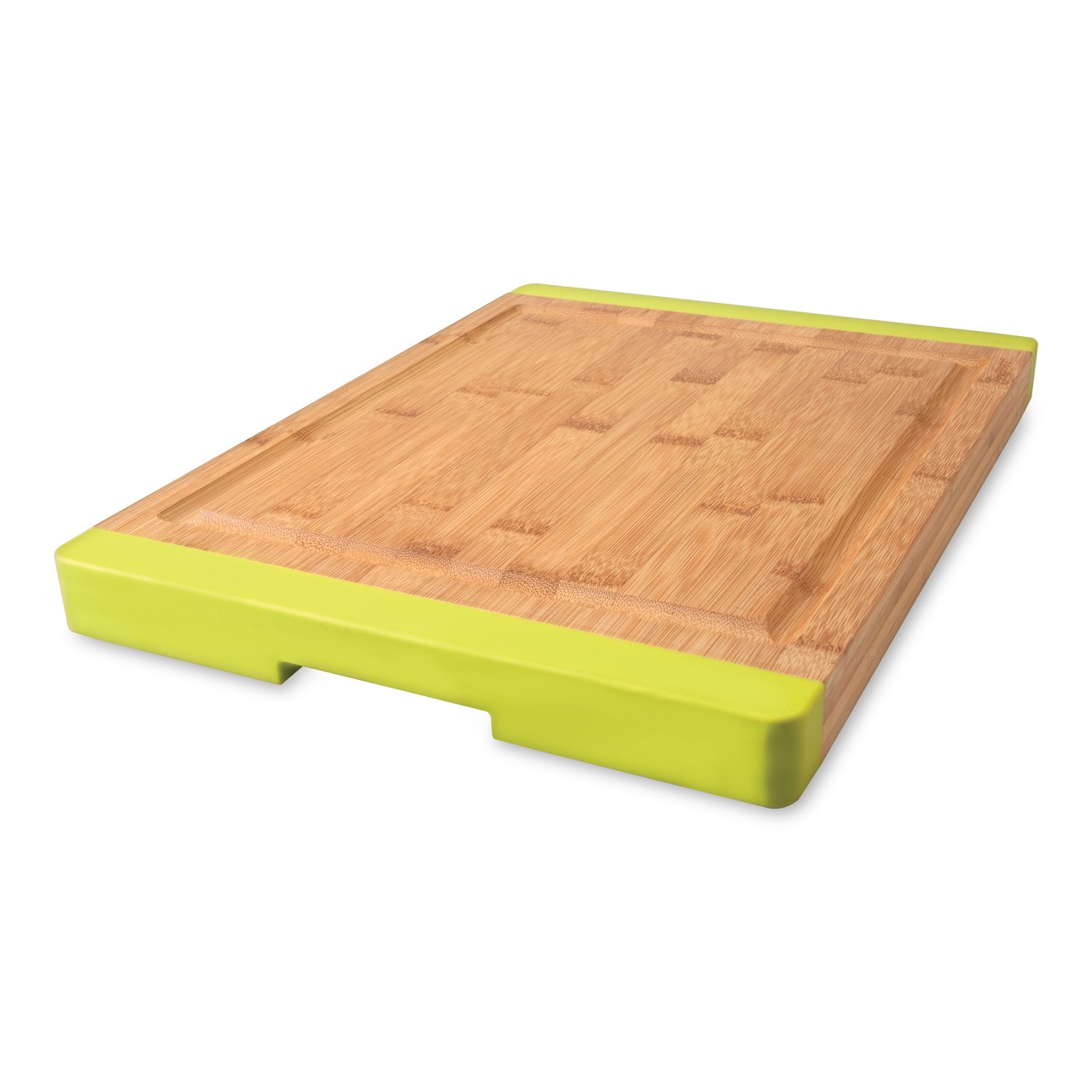 ГлавнаяДля кухниДоски разделочные → Доска разделочная бамбуковая с силиконовыми накладками 38*28*3см (профессиональная) Studio